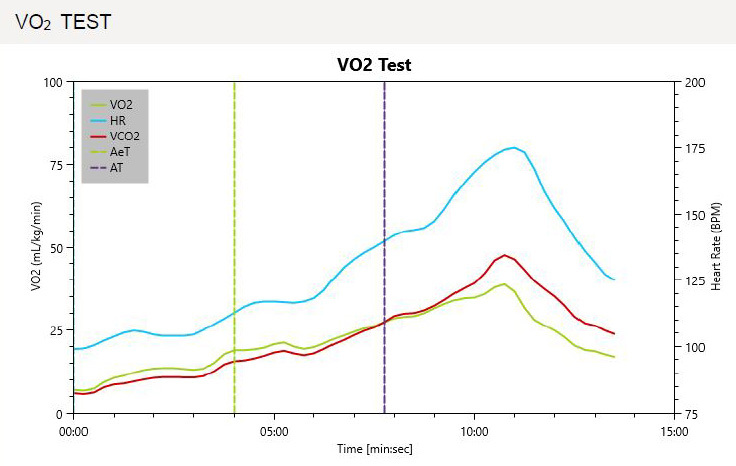 VO2 Max testing is a valuable tool for serious athletes to assess performance and evaluate training regimens. Even though extensive training can sometimes cause an athlete to reach a plateau in VO2 Max, he can still use his VO2 Max test results to make further improvements in performance. This is accomplished as he pushes to increase anaerobic threshold (AT) and maintain that threshold for longer periods of time. This enhances both endurance and cardiovascular performance.
